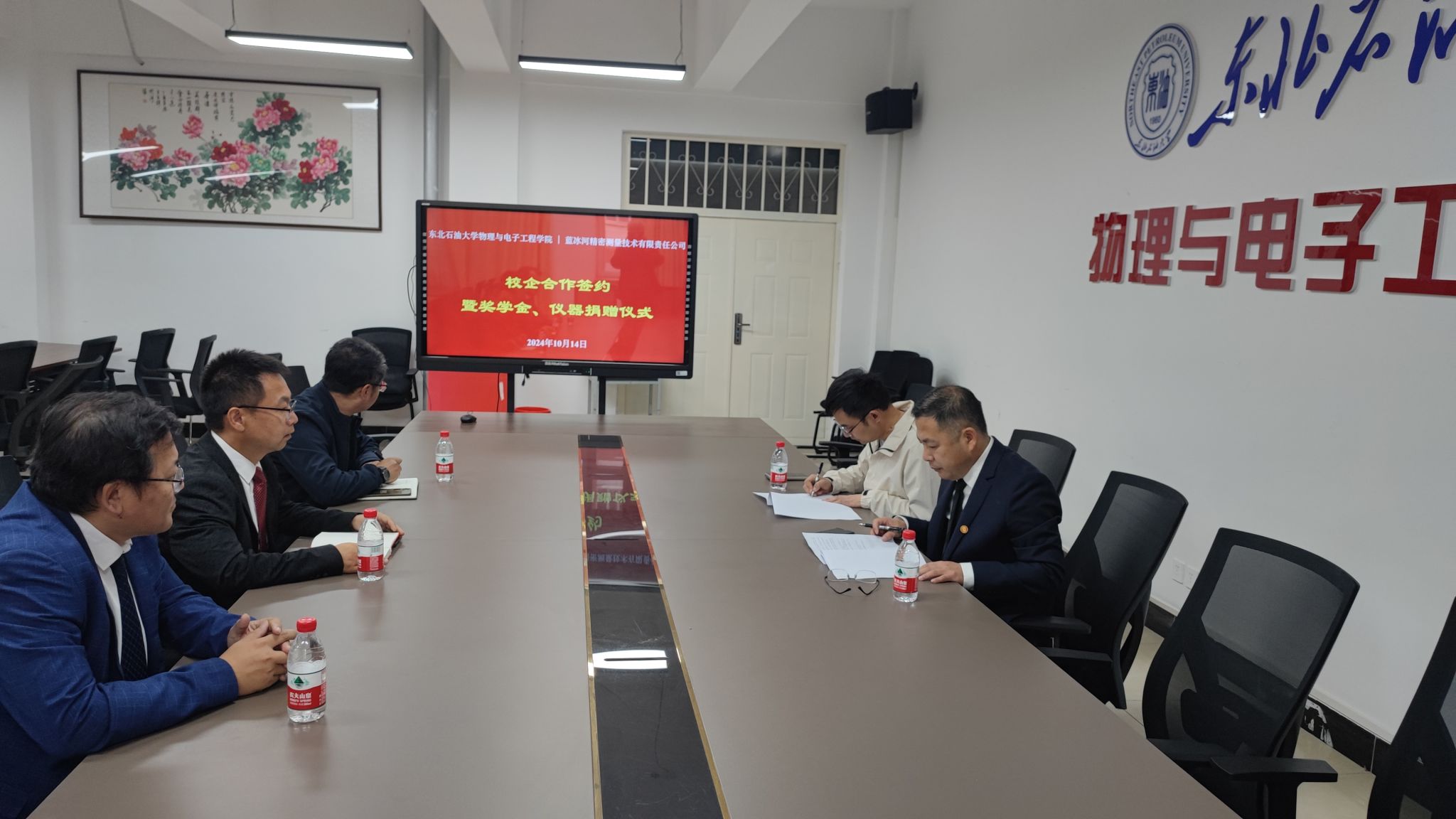 为促进教育链、人才链与产业链的有机衔接,太阳成集团tyc41183与蓝冰河(常州)精密测量技术有限责任公司于2024年10月14日在学院举行校企合作签约暨奖学金、仪器捐赠仪式。双方将在太阳集团、科研合作、实习实践等方面展开深度合作,共同为仪器与科学技术领域输送高素质人才。