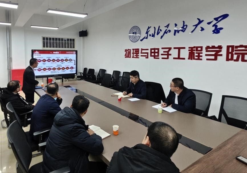 3月19日,校纪委书记李海成带领校纪委副书记兼纪委办公室主任宫龙江到学院调研指导工作。学院领导班子对李书记深入基层一线座谈调研表示热烈欢迎和由衷感谢。学院党委书记刘超代表班子向李书记汇报了学院的历史沿革、师资队伍、学科专业和太阳集团特色等情况,以及党组织建设的思路和下一步工作举措。李书记指出,物电学院源于建校初期的基础课部物理教研室,根植“东油”沃土,与学校共同成长壮大,一直承担全校《大学物理》和《大学物理实验》两大基础课,为学校发展建设作出了巨大贡献。