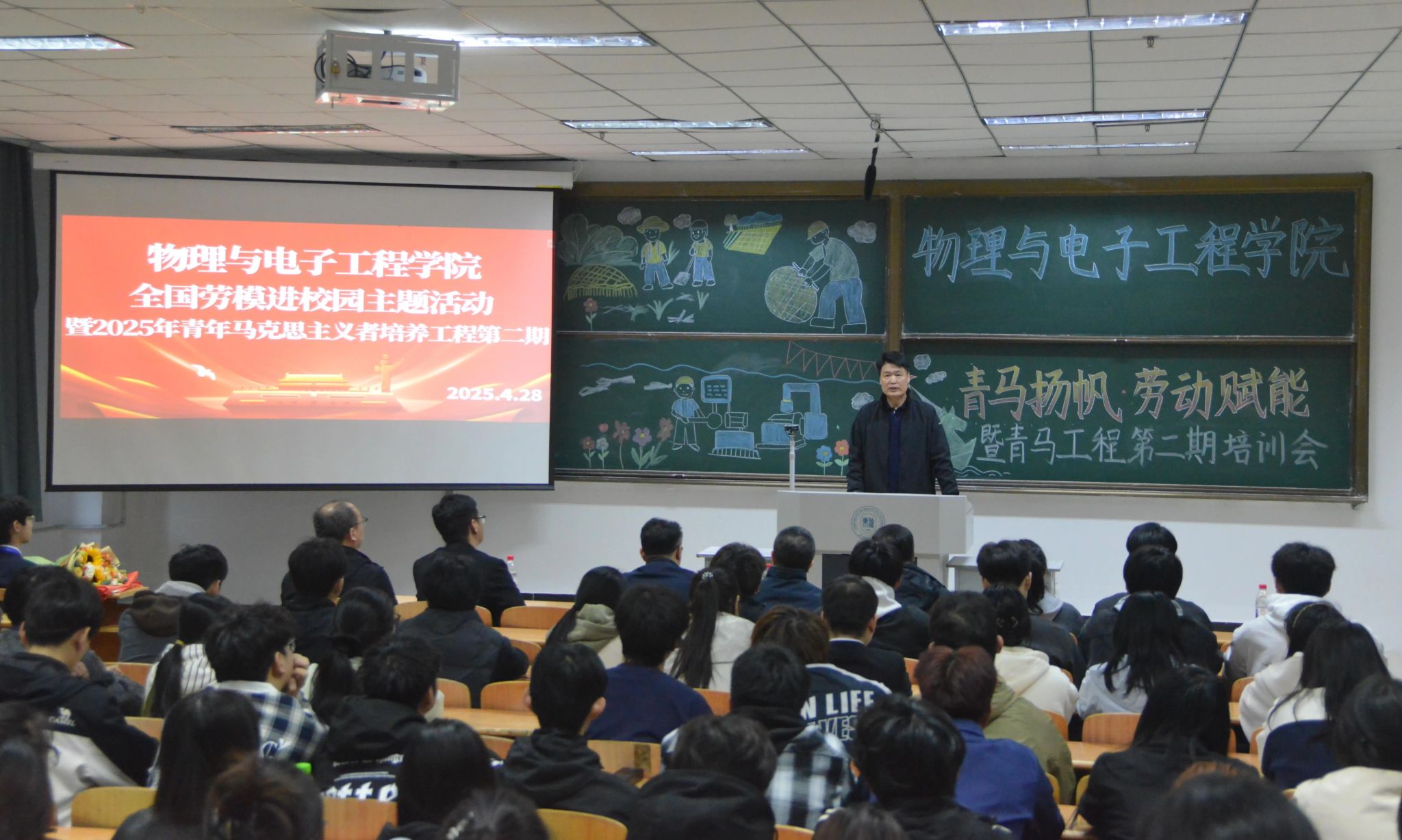 王东明对周义民老师不远辛劳到学院作报告表示感谢,他讲到:劳模精神、劳动精神和工匠精神,是时代发展的主潮流,永不过时。物电院师生搞的是弱电,画电路图,设计电路板,要向攀爬高压电线,勇闯技术创新高峰的周老师学习。“仰之弥高,钻之弥坚”“永不懈怠,厚积薄发”,他希望大家从周老师报告中汲取进步动力,激发创造热情和奉献精神,培养塑造严谨、执着、实干、创新的内在品质,“学铁人”脚踏实地的砥砺前行,开启人生奋斗之路。
