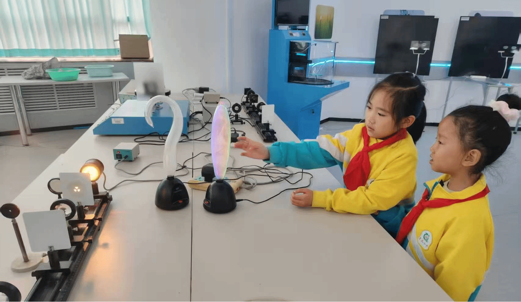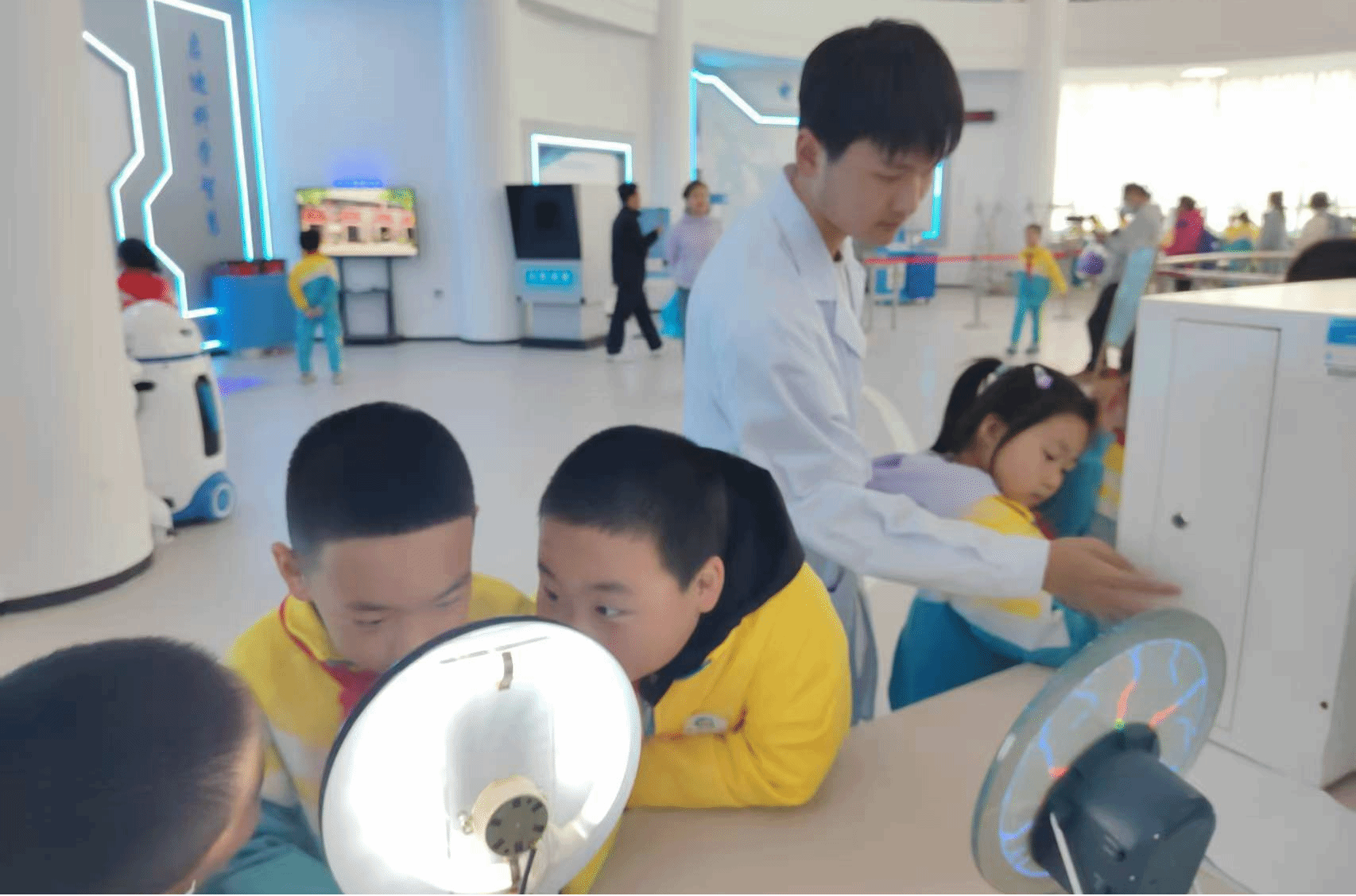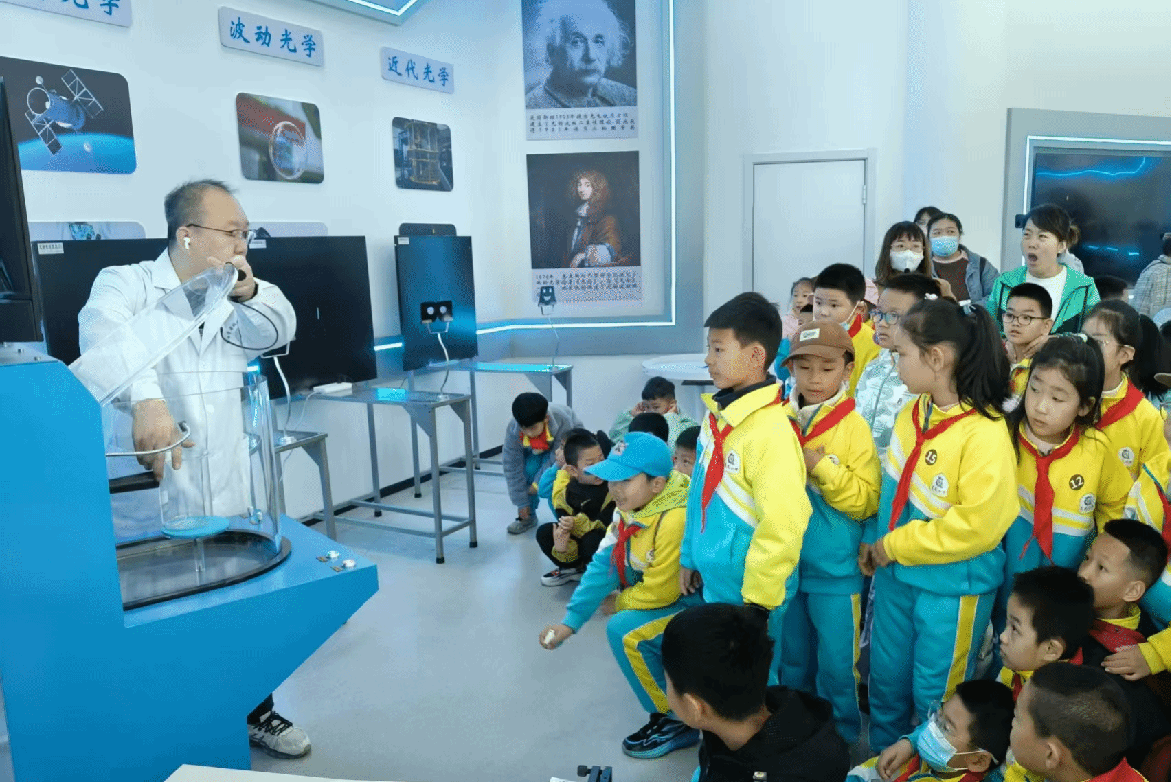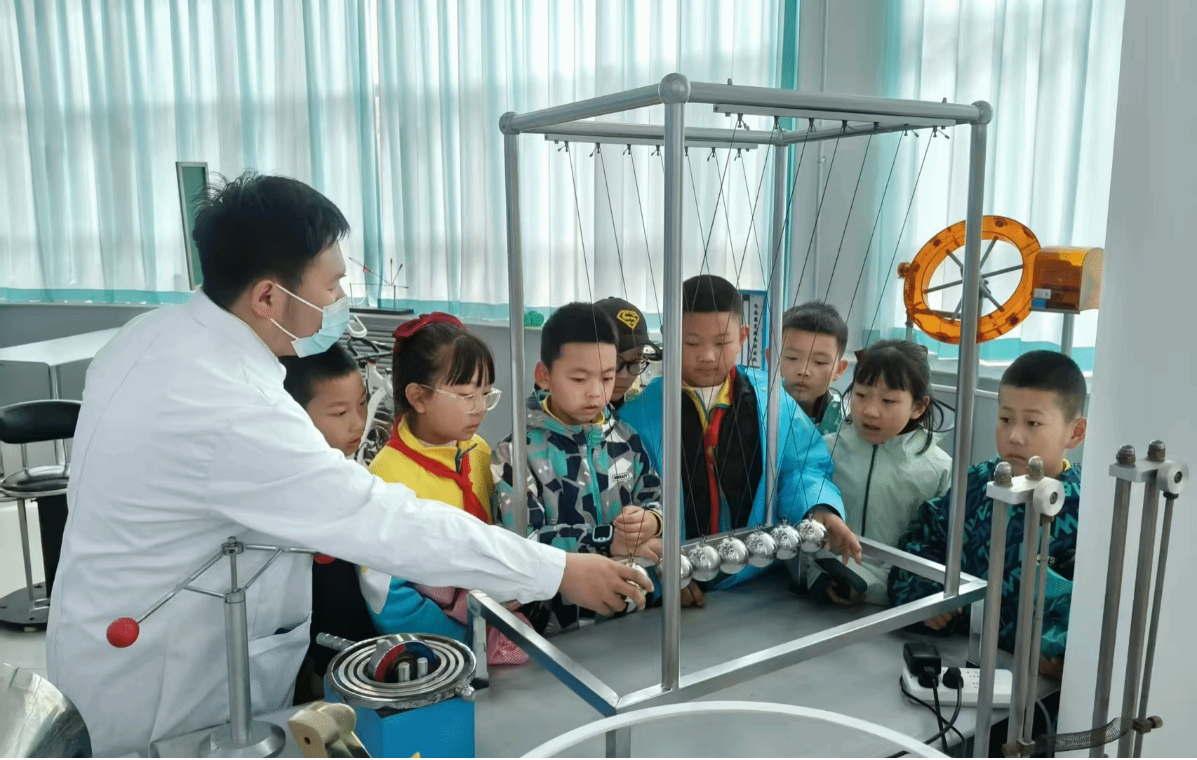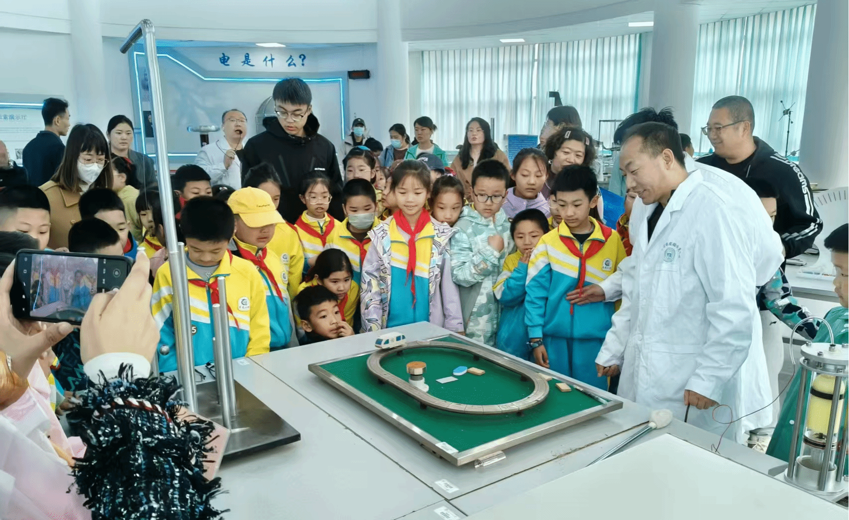 5月17日,大庆市庆风小学200余名学生走进太阳成集团tyc41183物理探索演示馆,开启了一场以“触摸科学·启迪未来”为主题的沉浸式研学之旅。此次活动通过校企联动模式,将高校科研资源转化为基础教育实践课堂,为小学生搭建了近距离感受物理学科魅力的平台。在学院物理教师与大学生物理宣讲团的讲解引导下,学生们分组体验了涵盖力学、光学、电磁学及现代科技的前沿展项,通过“做中学、玩中悟”的方式深化对物理原理的认知。