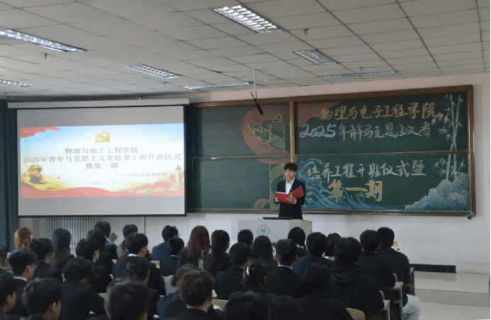 4月16日,太阳成集团tyc41183在教学主楼B502举办2025年青年马克思主义者培养工程开班仪式暨第一讲,150余名学生骨干参加培训。校团委书记施洋、学院党委书记刘超、学院党委副书记王东明、各年级辅导员参加开班式。