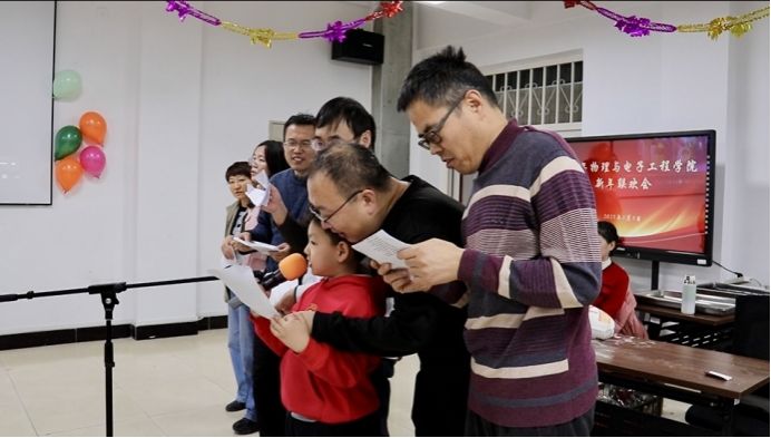 张雨老师、孙大为老师、刘松江老师、刘洋老师表演的三句半《物电和我,明天会辉煌》,质朴而有力地表达了对学院未来发展的坚定信心。