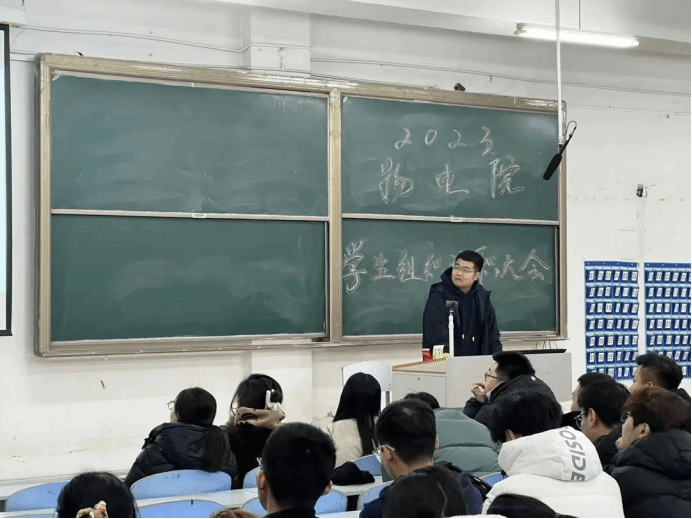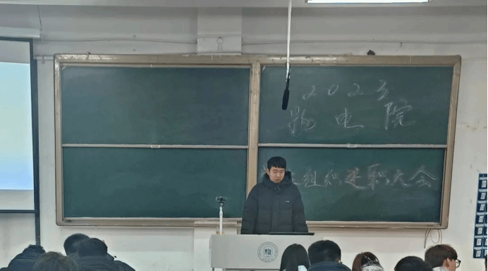 为进一步加强学院学生组织建设,提升学生干部工作能力。2023年12月28日召开“2023物电院学生组织述职大会”。此次会议由庄翔博老师主持,辅导员老师:王丽莉、刘小嘉、宫新婷、马严、张雪莹参加。院党委副书记王东明到会并进行讲话。