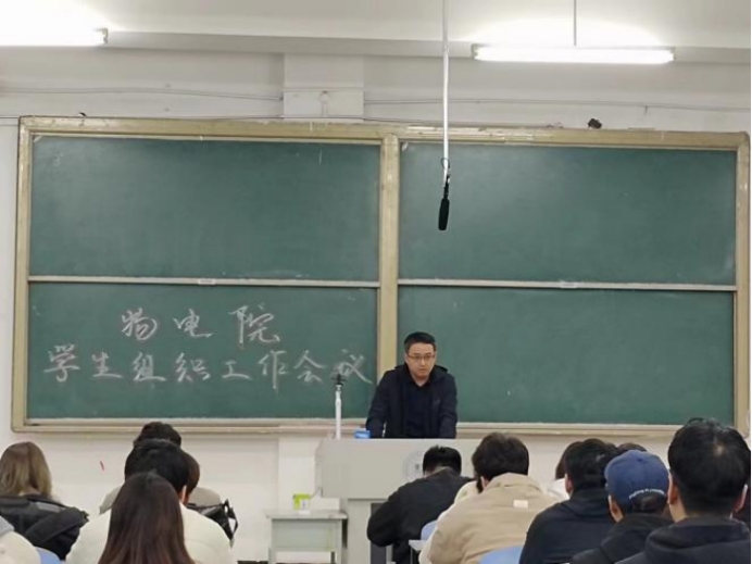 随后,团委书记庄翔博老师向各组织强调了工作重心,希望能与大家一同将学院团委工作做好。共同推动物电院团学工作迈上新台阶、创造新业绩。同时会上宣布我院成立新媒体工作部,由王宇航同学和郑美玉同学负责管理工作。