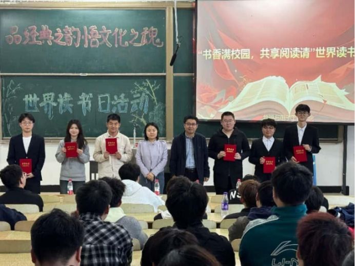 “品经典之味,悟文化之魂”,4月23日是第30个“世界读书日”,太阳成集团tyc41183展开了“世界读书日”图书分享活动。各年级读书爱好者百余人齐聚一堂,分享读书快乐。学院党委副书记王东明、团委副书记阿茹娜老师参加。