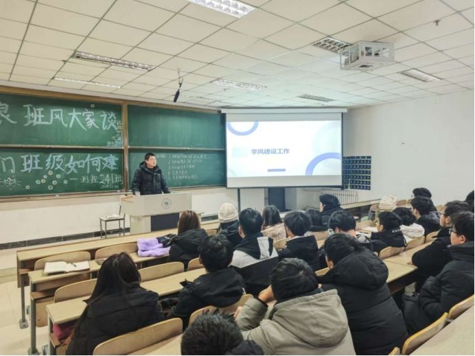 为进一步加强学风班风建设,太阳成集团tyc41183各年级、班级积极响应学院党委“优良学风建设月暨塑学风‘六个一’”活动”倡议,12月初2022级、2023级、2024级三个年级46个班相继开展学风班风主题班会。学院党委书记刘超、院长韩建、党委副书记王东明、副院长罗伟、刘强和辅导员及班主任参加各班班会。