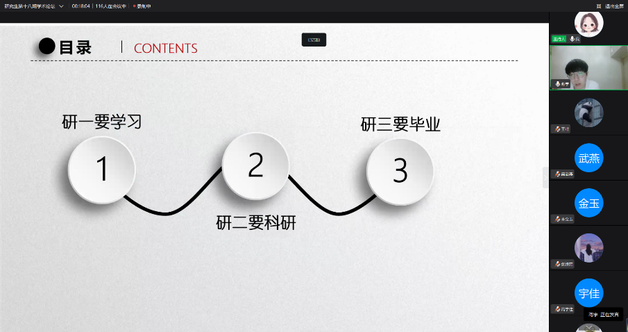 为加强我院各年级研究生之间的沟通与交流,促进学院研究生学业和教育管理工作,2022年5月31日晚20:00,我院研究生第十八期学术论坛通过钉钉会议举办。2019级研究生蒋宇受邀进行分享,我院王丽莉老师、安妮老师以及2020级、2021级全体研究生参与本次论坛。