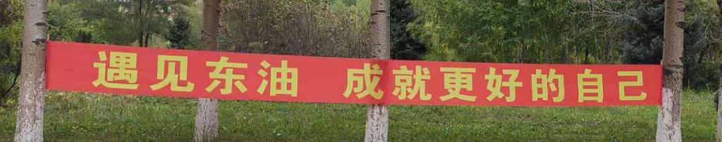 大红的迎新标语和拱门,将美丽的东油装点一新