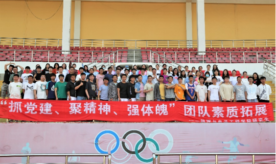(通讯员 周兴达)为喜迎中国共产党成立100周年,深入贯彻落实“不忘初心,牢记使命”,进一步增强师生的历史责任感和使命感,2021年5月22日,由物理与电子工程学院研究生第一党支部主办“抓党建、聚精神、强体魄”团队素质拓展活动在学校体育场正式拉开帷幕。参加活动的有正处级辅导员王丽莉老师、辅导员安妮老师和2019级、2020级全体研究生。踏着初夏的气息,迎着柔和的清风,活动在大家共同参与下如火如荼地展开。