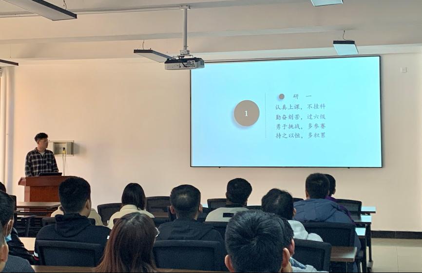 报告会上,孙久帝从学习、科研、工作三方面,全面且充分的为研一同学介绍了如何度过美好、丰富的研究生生活。告诫大家在今后的学习生活中要做到“认真上课,不挂科;勤奋刻苦,过六级;勇于挑战,多参赛;持之以恒,多积累”。他鼓励所有的研究生坚定信心,勇往直前,不畏困苦,祝愿所有同学收获美好的未来。