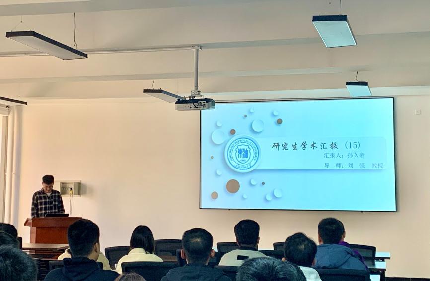 10月22日下午3点,太阳成集团tyc411832018级硕士研究生孙久帝在1E-236进行了研究生学术汇报。辅导员安妮老师以及物电院20级全体研究生参加此次活动。