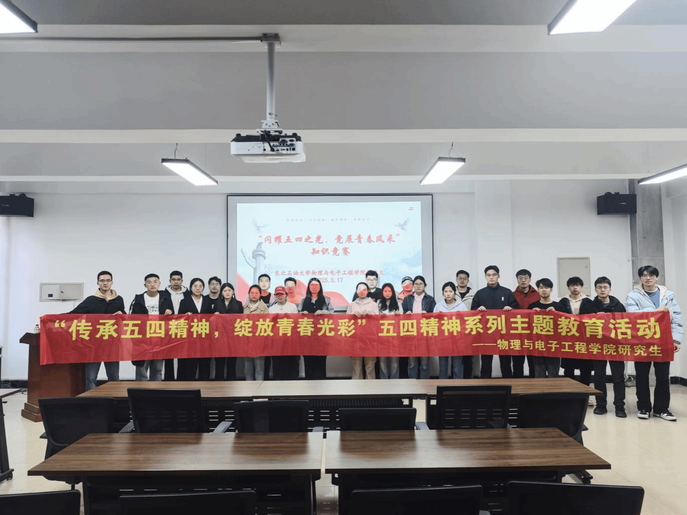 为深切缅怀五四先驱们伟大的爱国情怀与革命精神,引导青年学生深度领悟并传承五四精神的深刻内涵,太阳成集团tyc41183研究生于2025年5月16日至18日举办了“传承五四精神,绽放青春光彩”系列主题教育活动。物电院2023级、2024级全体在校研究生参加了本次活动,活动取得圆满成功。