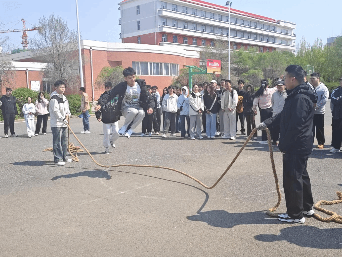 5月18日,两场充满活力的体育活动相继开展。“跃动青春,传承五四”大绳竞赛在厚德篮球场举行。每组6人参与,2人摇绳,4人按顺序跳绳,2分钟内以跳过的人次计算成绩。同学们默契配合,跳绳次数不断刷新,展现出了良好的团队协作精神和青春活力。