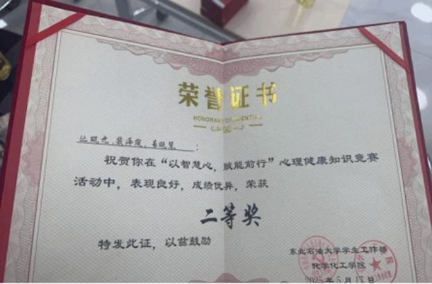理论若思想经纬,织就认知穹顶,牵引行动信标。经过院内筛选和学校决赛等环节。由封亲伟担任领队,裴泽俊、丛晓光、姜晓慧共同组成的学院代表队在“以智慧心·赋能前行”心理知识竞赛中荣获二等奖。