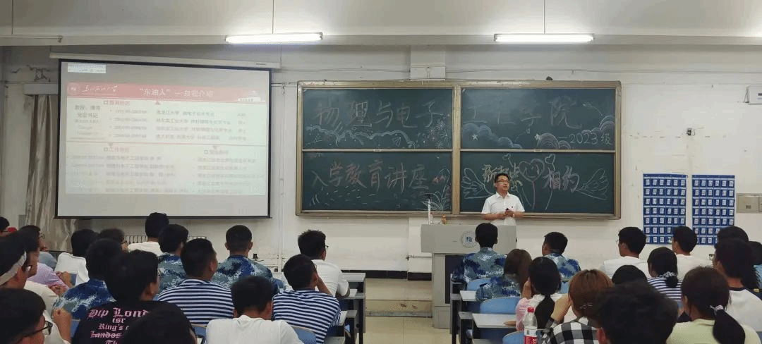 8月23日晚,院党委书记刘超为同学们开展了题为“红心向党,不负韶华,践行使命,成就梦想”的新生入学第一堂党课。课上,刘书记介绍了我校“艰苦创业,严谨治学”的校训和“严谨,朴实,勤奋,创新”的校风。教育大家如何度过有意义的大学生活,告诫同学们不要迷失方向、不要盲目追求自由,只有树立远大理想,努力学习,红心向党,不负韶华,才能成就梦想。希望大家厚植家国情怀,树立远大理想,保持良好心态,刻苦钻研,努力奋斗,最终成就梦想,实现价值。