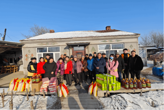 电信232孙宏启:假期我参加了家乡的一个慈善活动,时常为农村群众运送物资,献上爱心。本次我们的活动是为海林市斗银村的村民们送物资,帮助他们过个幸福祥和的新年。