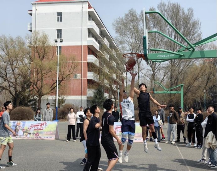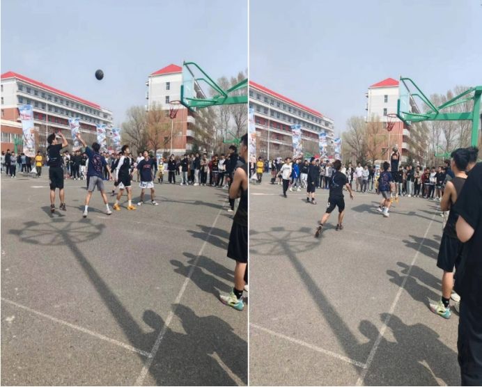 中午12:00,由我院党委副书记王东明宣布比赛正式开始,球员们在厚德篮球场上开始了对冠军的角逐,他们挥洒汗水,他们忘我投入。随着晚风轻拂,篮球赛落下帷幕,但同学们的热情和对篮球的爱好却如同这春天的气息,愈发浓烈。
