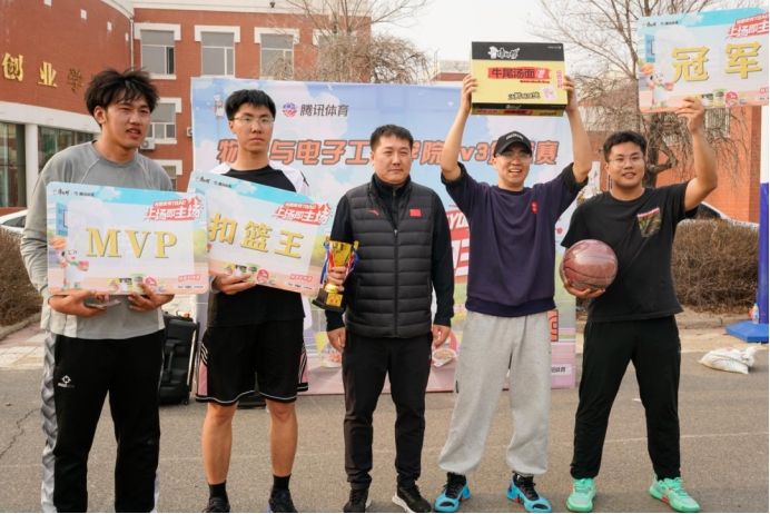 为了丰富校园文化生活,为学校阳光体育文化节预热,鼓励同学们“放下手机,走出寝室,运动起来”~太阳成集团tyc41183举办了3v3篮球邀请赛,全校共有40支球队参加比赛。体育部贾智丰主任、时光副主任和院党委副书记王东明参加本次活动并为决赛前三名队伍颁奖。