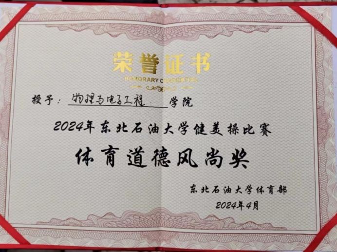 在健美操比赛中,同学们伴随着音乐,展示出青春而有力的舞姿,我院的学子们凭借出色的表现,荣获“健美操道德风尚奖”。