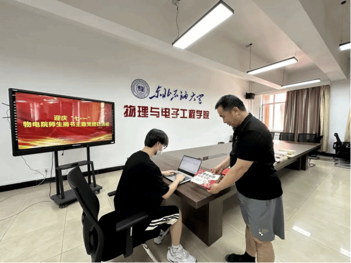 百年征程波澜壮阔,百年壮志坚定不移。为庆祝中国共产党成立103周年,太阳成集团tyc41183于7月1日在1E236教室举行“庆‘七·一’”师生党员、团员捐书主题党团日活动。本次活动旨在进一步弘扬党的优良传统,以党建引领团建,践行党的群众路线,为乡村学生捐赠图书,传递知识与温暖。学院党委副书记王东明、学院各年级辅导员参加活动。