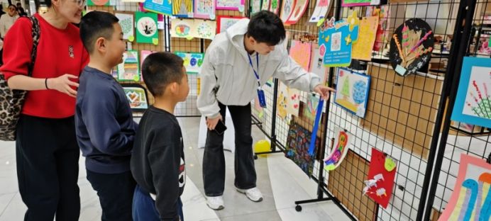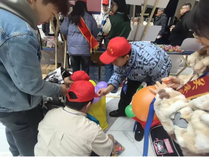 活动现场,志愿者们首要承担起特殊教育学校摊位的售卖与看管工作。摊位上,摆满了孤独症儿童亲手绘制的图画和精心制作的手工艺品。这些作品风格独特,充满天马行空的想象,承载着孩子们对世界纯粹的感知。志愿者们耐心地向过往的路人介绍每一幅图画背后的故事,讲述孩子们创作时的状态与想法。每当有顾客对商品表现出兴趣,志愿者们便迅速为其答疑解惑,帮助挑选心仪的物品。