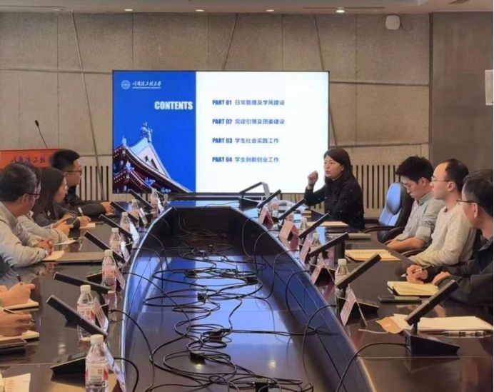 在东北林业大学理学院,院党委书记李玉荣对兄弟院校来访表示欢迎,并对深化交流合作提出愿景。院党委副书记李鹏和各位辅导员老师就林大理学院以生态文明为底色、以基础学科太阳集团为目标的学生工作大背景以及志愿服务育人、精准资助育人、数理文化育人、学风引领育人等特色做法和经验成果进行了工作介绍。