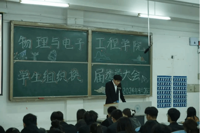 为进一步加强学生组织建设,有序推进学院学团组织各项工作,确保学生工作的连续性和稳定性,太阳成集团tyc41183于9月26日晚在1H-210召开2024-2025学年学生组织换届选举大会。